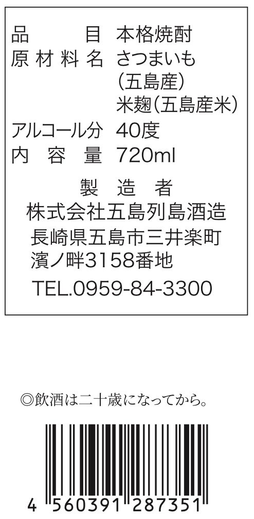 | 原材料名 | さつま芋、米麹(全て長崎県五島市産) |